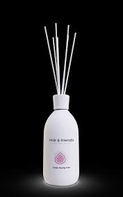 Le profumazioni di Milk & Friends vengono diffuse nell’ambiente attraverso bastoncini in fibra che hanno la caratteristica di assorbire e diffondere gradualmente la fragranza senza la necessità di essere girati, per evitare di sporcarsi le mani.